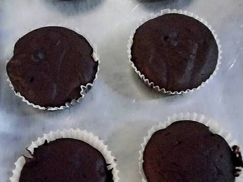 Masukkan campuran tepung dan coklat dan susu cair secara bergantian sedikit demi sedikit sambil dikocok dengan kecepatan rendah. Lalu tuang dalam cetakan yang sudah dialasi kertas cupcake.